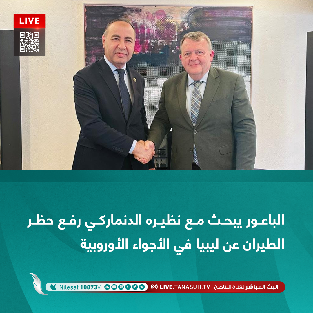 بحث وزير الخارجية المكلف ” الطاهر الباعور” مع وزير الخارجية الدنماركي ” لارس لوكي غاسموسن” رفع الحظر عن الطيران الليبي في الأجواء الأوروبية ، بالإضافة إلى استئناف عمل السفارة الدنماركية في العاصمة طرابلس.