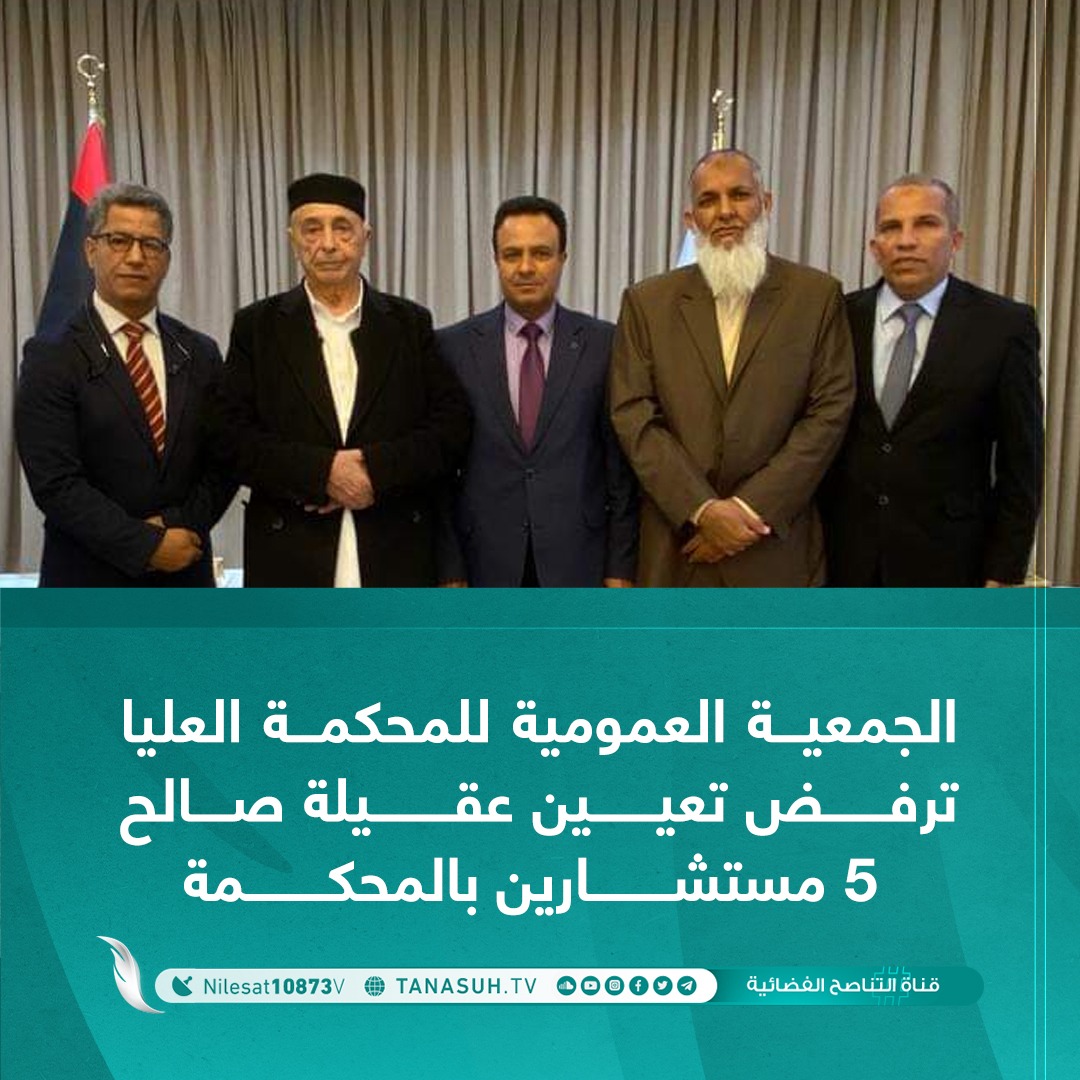 رفضت الجمعية العمومية للمحكمة العليا في اجتماعها أمس الأربعاء قرار تعيين عقيلة صالح 5 مستشارين بالمحكمة العليا