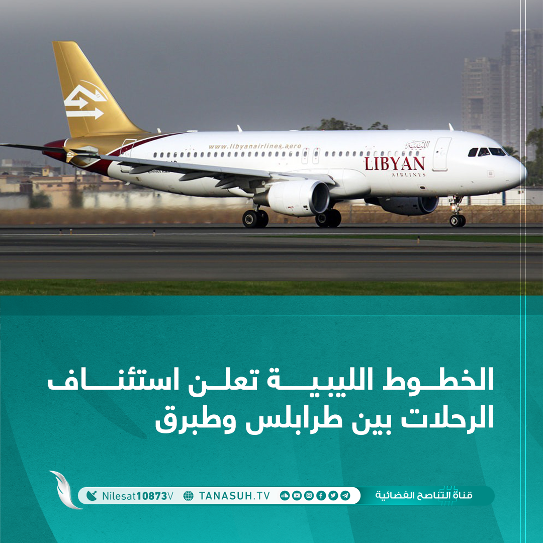 أعلنت شركة الخطوط الجوية الليبية استئناف رحلاتها بين مدينتي طرابلس وطبرق بداية من اليوم الأحد بواقع رحلة أسبوعيا كل يوم أحد، وأوضحت الشركة السبت أن موعد الإقلاع سيكون على تمام الـــ08:30 صباحا من مطار معيتيقة إلى مدينة طبرق.