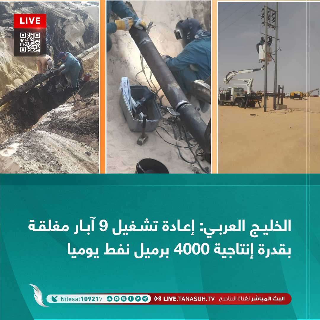 أعلنت شركة الخليج العربي للنفط الأحد، تمكن فرق الصيانة بحقل السرير من تنفيذ إصلاحات هامة أدت إلى إعادة تشغيل 9 آبار مغلقة بالحقل، وكانت نتيجة هذه الإصلاحات إنتاج 4000 برميل نفط خام يوميًا.