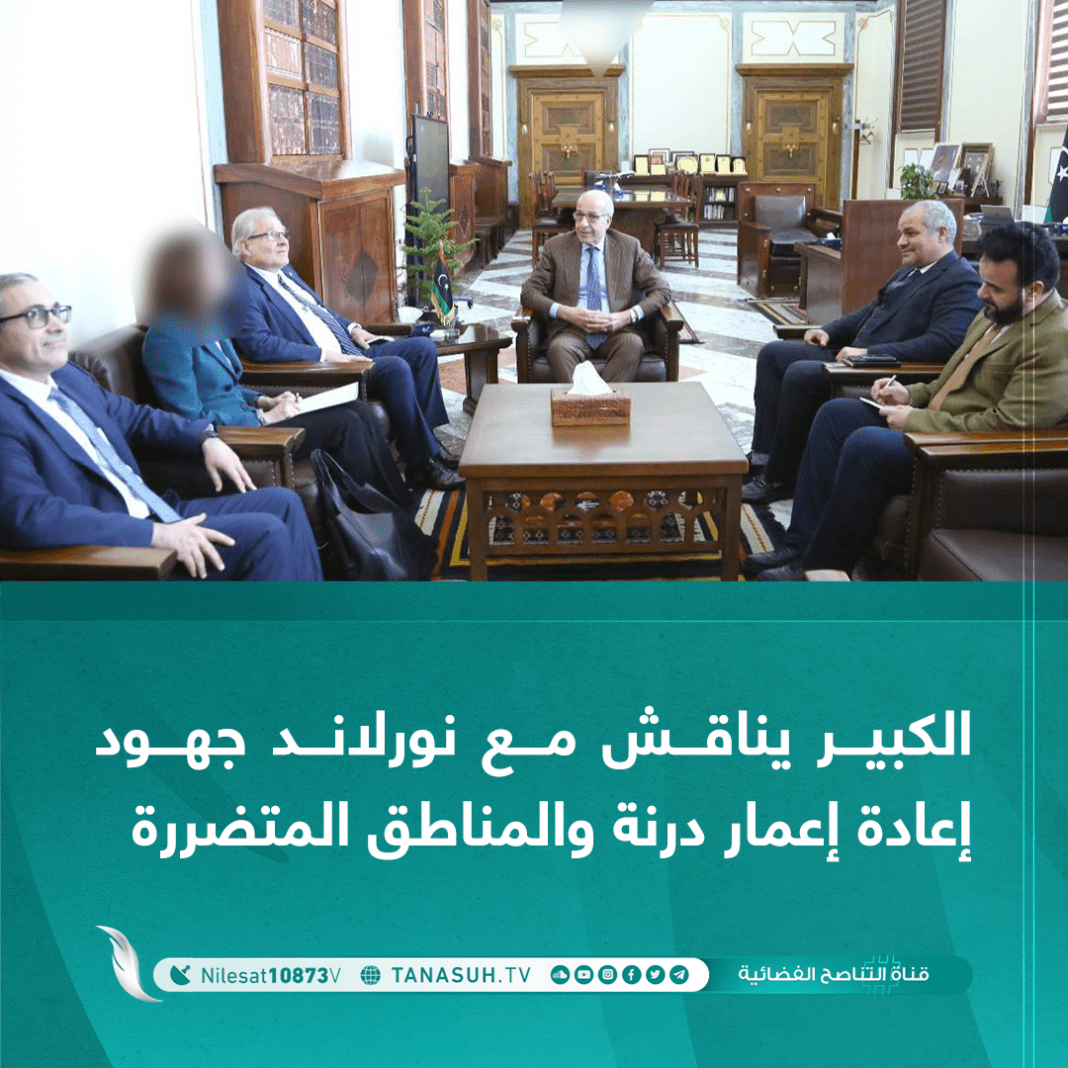 ناقش محافظ مصرف ليبيا المركزي/ الصديق الكبير مع المبعوث الأمريكي الخاص/ ريتشارد نورلاند إعادة إعمار درنة والمناطق المتضررة والتعاون مع الوكالة الأمريكية للتنمية وشركة “براقما” لرفع كفاءات إدارات المصرف المركزي، ومعالجة دعم المحروقات، وترشيد الإنفاق، واستمرار جهود الشفافية والإفصاح، بحسب المكتب الإعلامي للمصرف المركزي