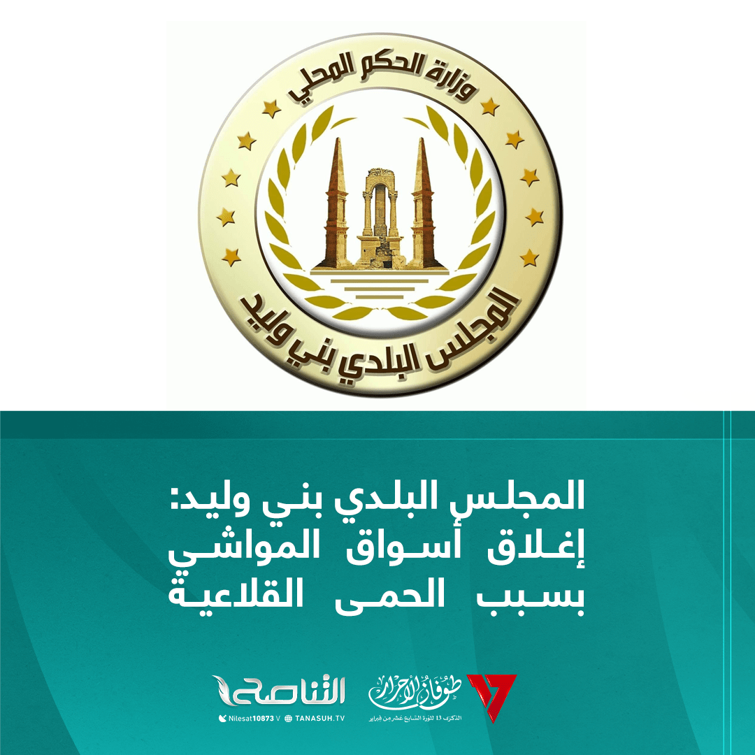 أعلن المجلس البلدي بني وليد إغلاق أسواق المواشي ومنع دخولها إلى المدينة؛ نظرًا لانتشار مرض الحمى القلاعية في البلديات المجاورة