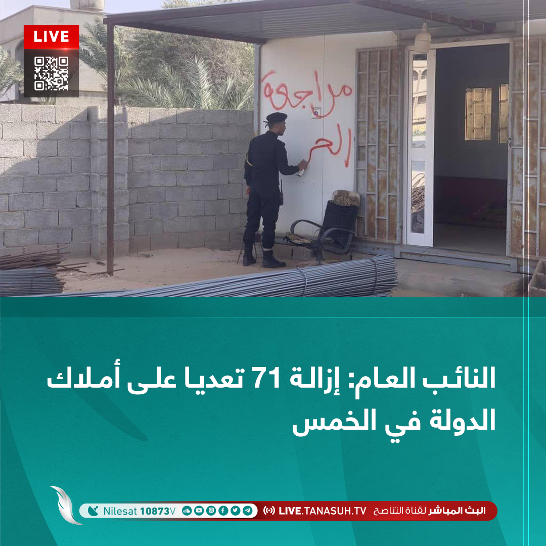 أعلن مكتب النائب العام، الاثنين، إزالة 71 تعديا على عقارات الدولة في مدينة الخمس، استغلها تجار مواد البناء والمخلفات المعدنية دون ترخيص يجيز لهم ذلك.