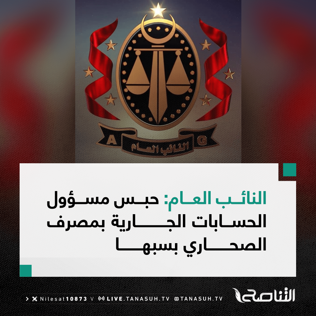النيابة العامة تأمر بحبس مسؤول حسابات في فرع مصرف الصحاري بسبها؛ للاشتباه في قيامه بعمليات مصرفية غير مشروعة، تمثلت في خصم مليونيْ دينار من أموال المصرف، ترتيبا على قبول صكوك مصرفية بدون تغطية رصيد.