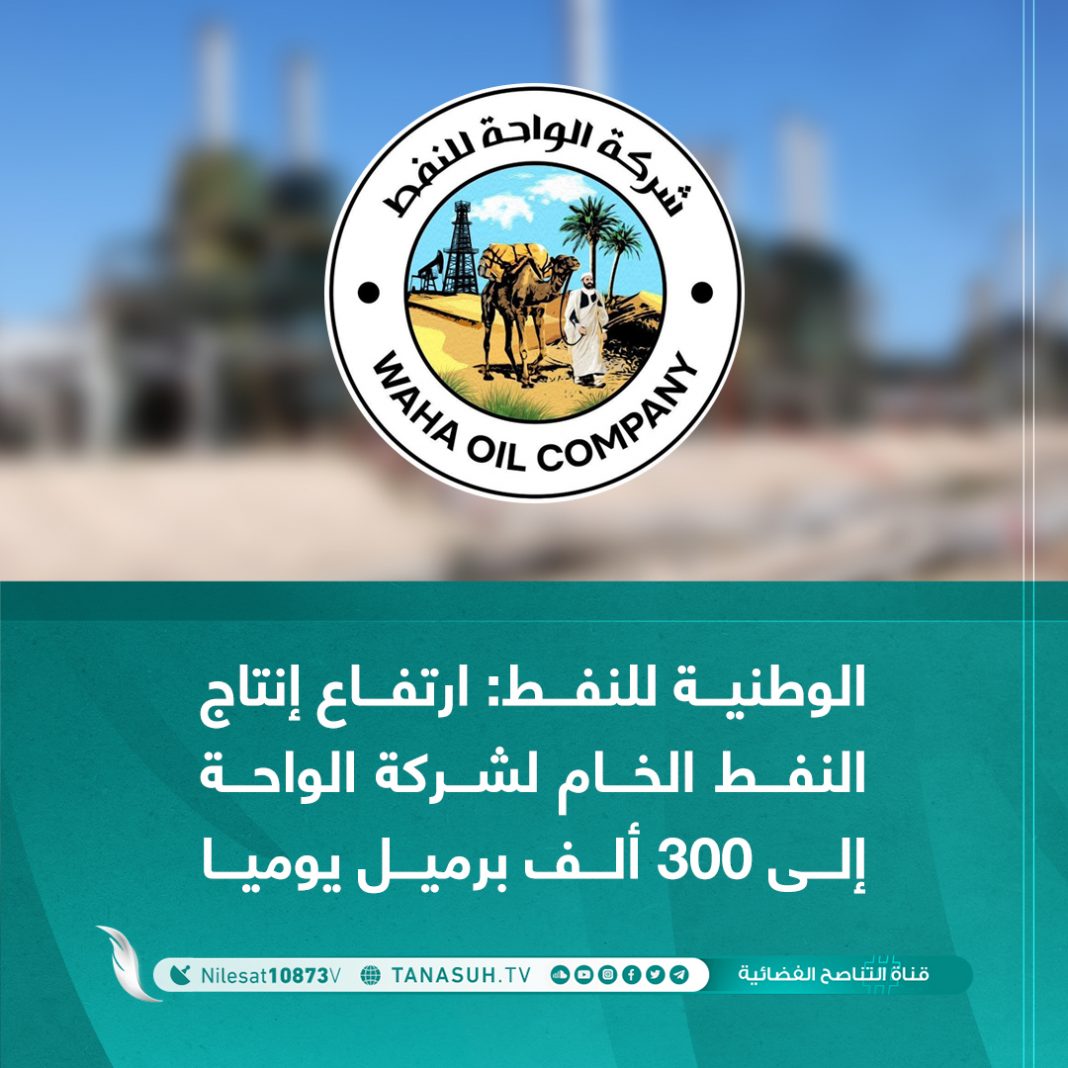 الوطنية للنفط: ارتفاع إنتاج النفط الخام لشركة الواحة إلى 300 ألف برميل يوميا