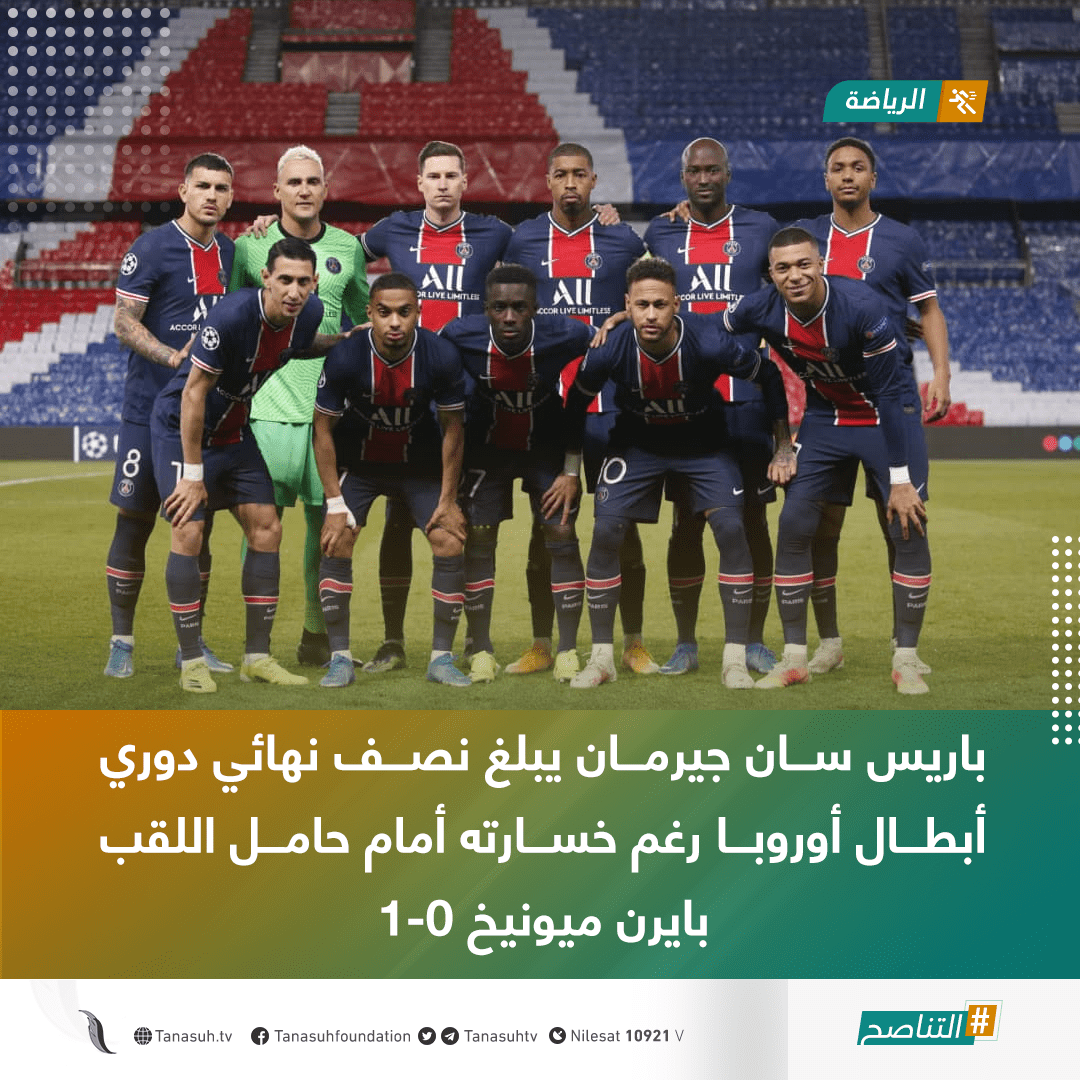 تأهل باريس سان جيرمان الفرنسي إلى نصف نهائي دوري أبطال أوروبا رغم الهزيمة في ملعبه حديقة الأمراء من بايرن ميونيخ الألماني بهدف دون رد
