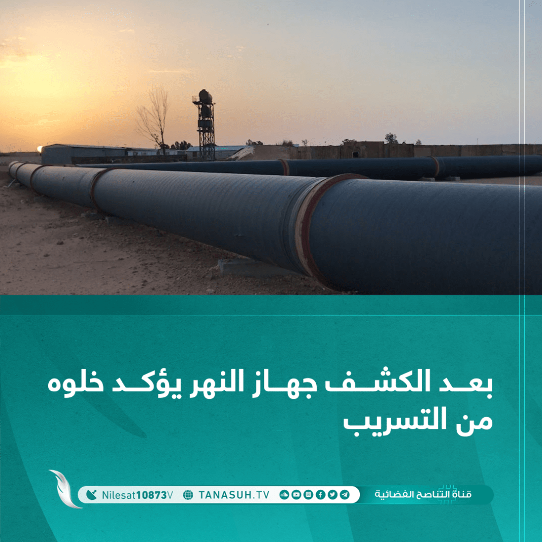 أكد جهاز النهر الصناعي عدم وجود أي تسريب في خط الأنابيب الرئيس الناقل للمياه المار بمدينة زليتن
