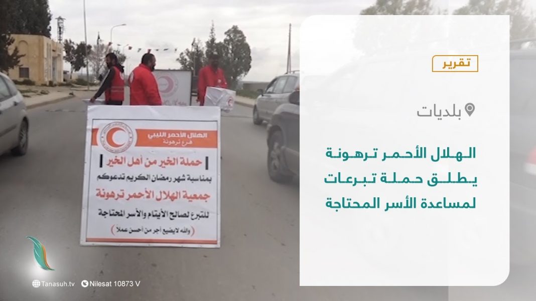 #تقرير – بلديات |أطلقت جمعية الهلال الأحمر بترهونة حملة تطوعية لجمع التبرعات لمساعدة الأسر المحتاجة والأيتام خصوصا مع اقتراب حلول شهر رمضان المبارك