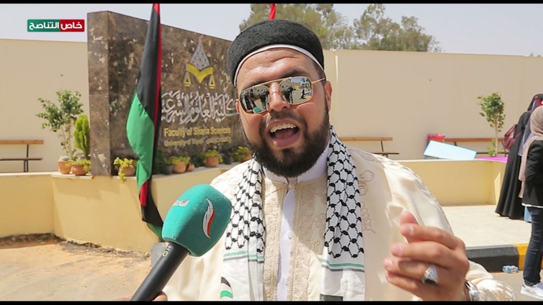 عدسة التناصح | الطاهر أبونوارة/ رئيس قسم العلوم الشرعية بتاجوراء: وقفنا هذه الوقفة رفضا واستنكارا للاعتداء الغاشم الصهيوني على أهلنا في غزة، وليعلم الجميع أنها واجب شرعي ووطني تجاه القضية الفلسطينية