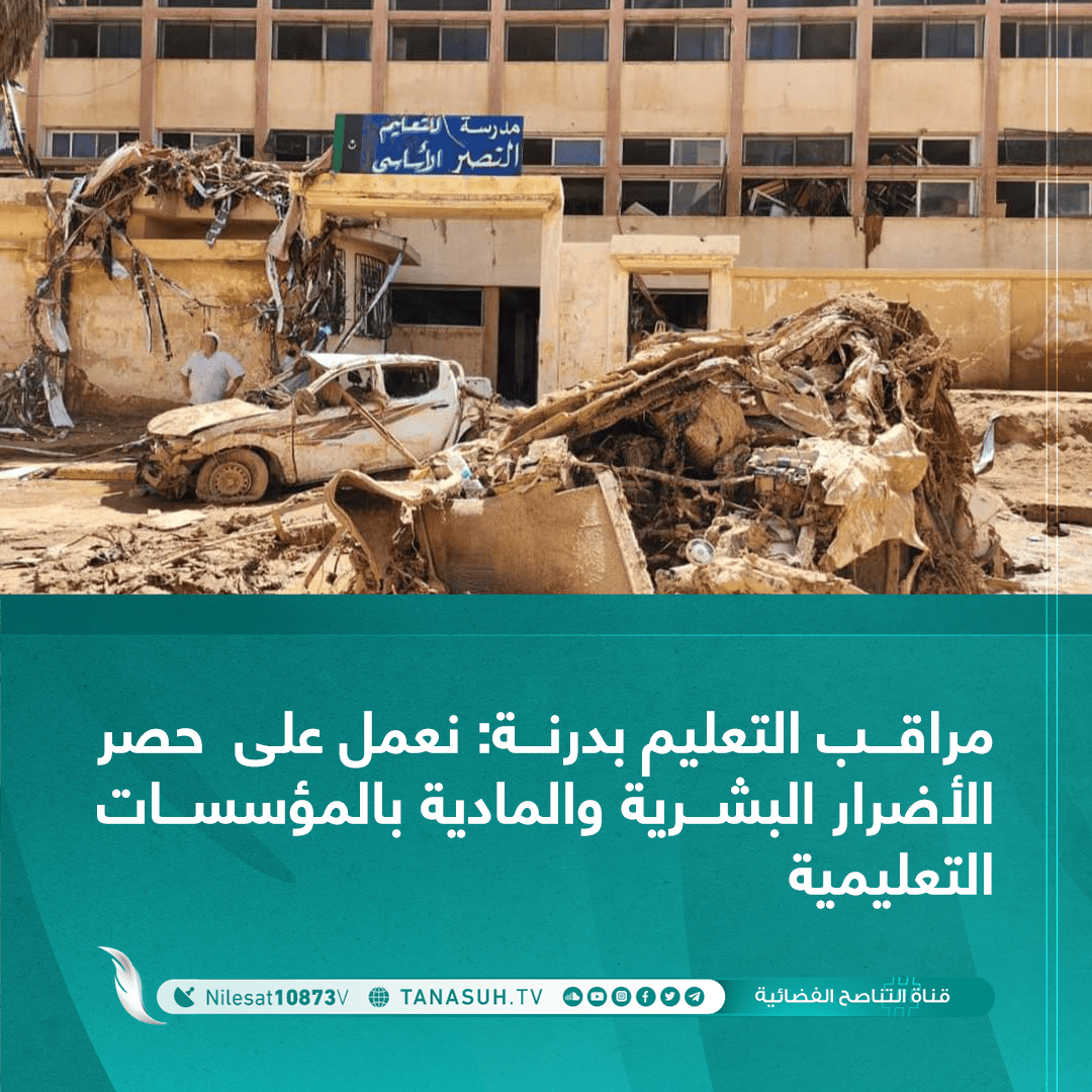 مراقب التعليم بدرنة: نعمل على حصر الأضرار البشرية والمادية بالمؤسسات التعليمية