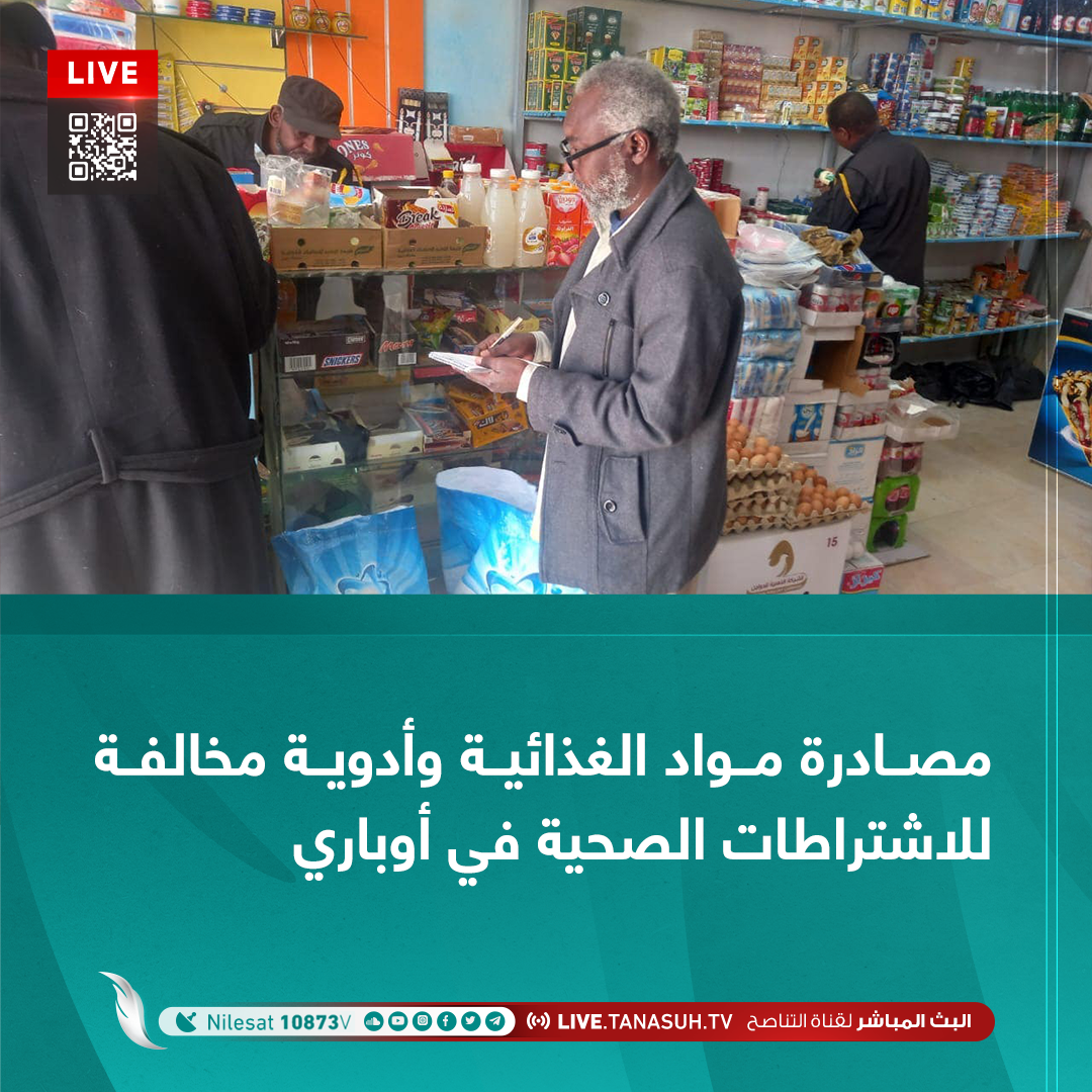 أعلن مركز الرقابة على الأغذية والأدوية، اليوم السبت، مصادرة بعض المواد الغذائية والأدوية المنتهية الصلاحية في حملة شملت الأسواق المجمعة والمفتوحة وبعض الصيدليات في بلدية أوباري ضمن الحملة الوطنية لحماية المستهلك.