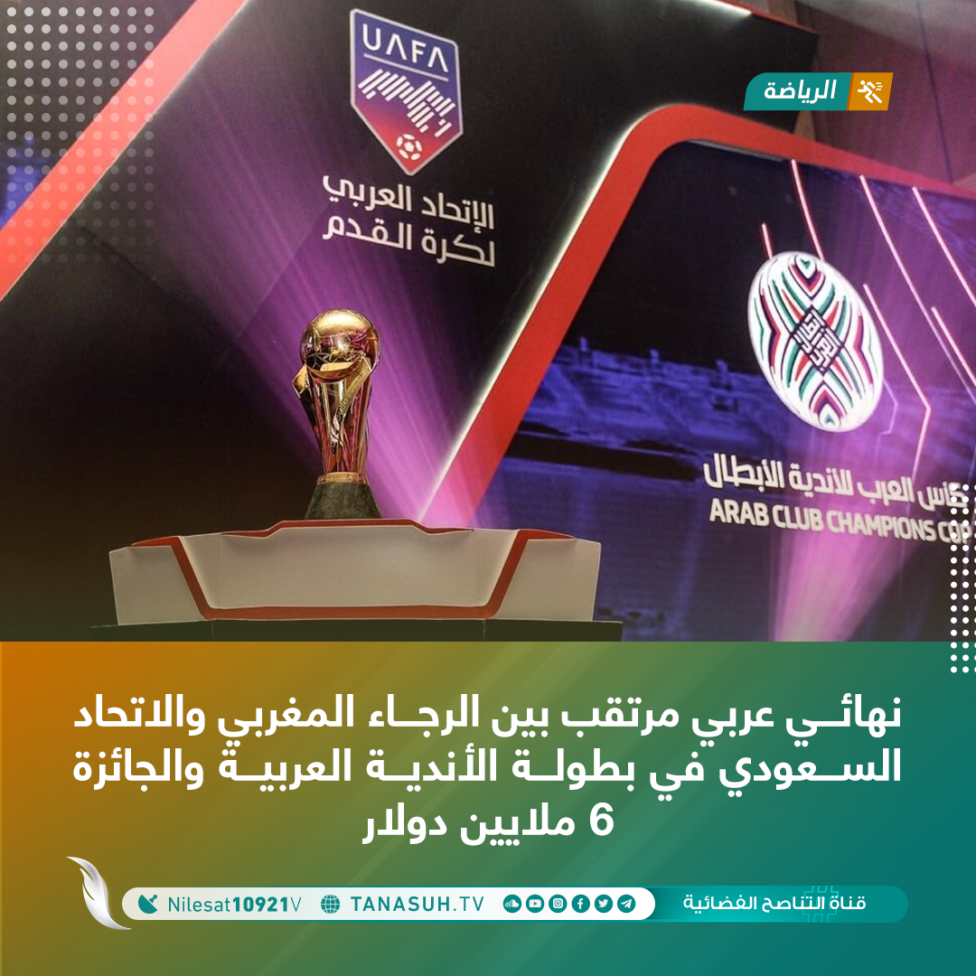 نهائي عربي مرتقب بين الرجاء المغربي والاتحاد السعودي في بطولة الأندية العربية والجائزة 6 ملايين دولار