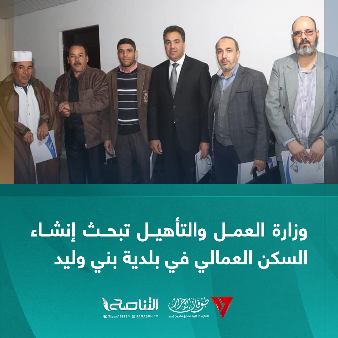 بحث مدير إدارة متابعة شؤون السكن العمالي بوزارة العمل والتأهيل، خلال اجتماعه مع بلدية بني وليد إنشاء سكن عمالي للعمالة الأجنبية للحد من ظاهرة السكن العشوائي، و وأكدت البلدية حرصها على المشروع واتخاذ الإجراءات القانونية والإدارية لتنفيذه