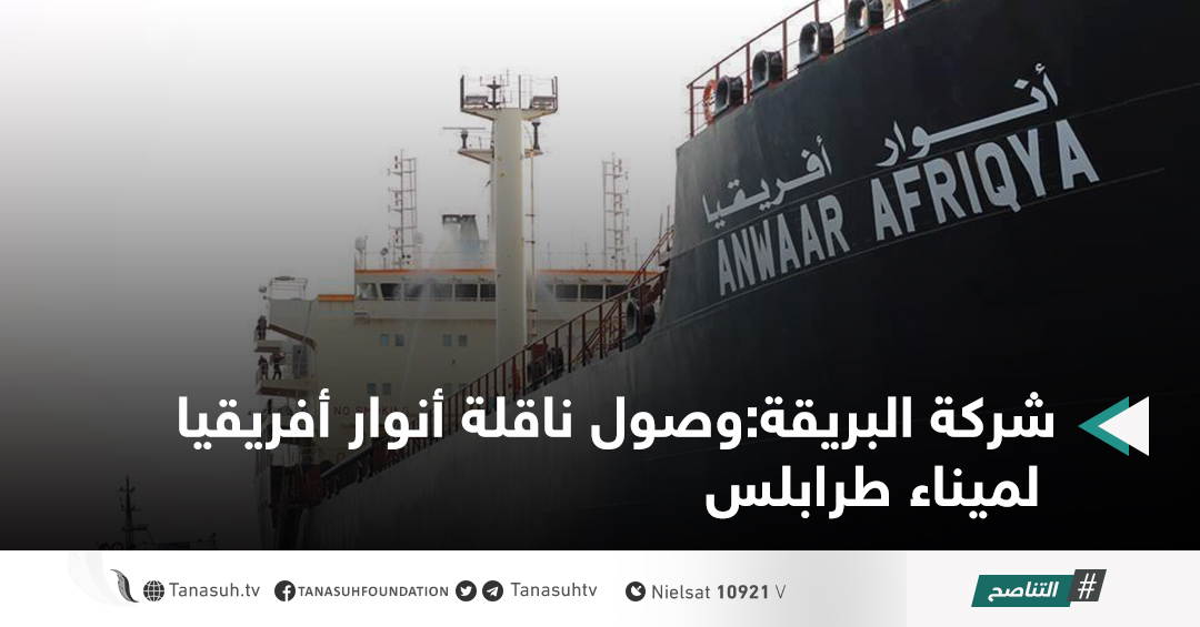 أعلنت شركة البريقة لتسويق النفط اليوم الأحد وصول ناقلة أنـــــــوار أفريقيا لمنطقة المخطاف بميناء طرابلس البحري وأن عمليات دخول وحركة النواقل البحرية تسير بشكل طبيعي حسب الجداول المعدة مسبقا لوصولها للمواني الليبية