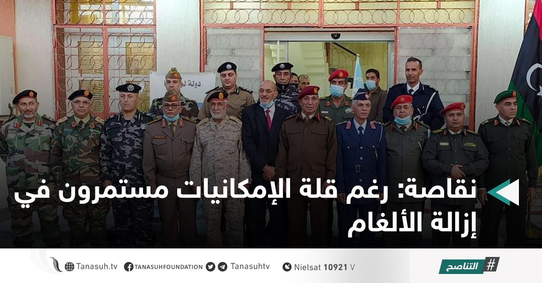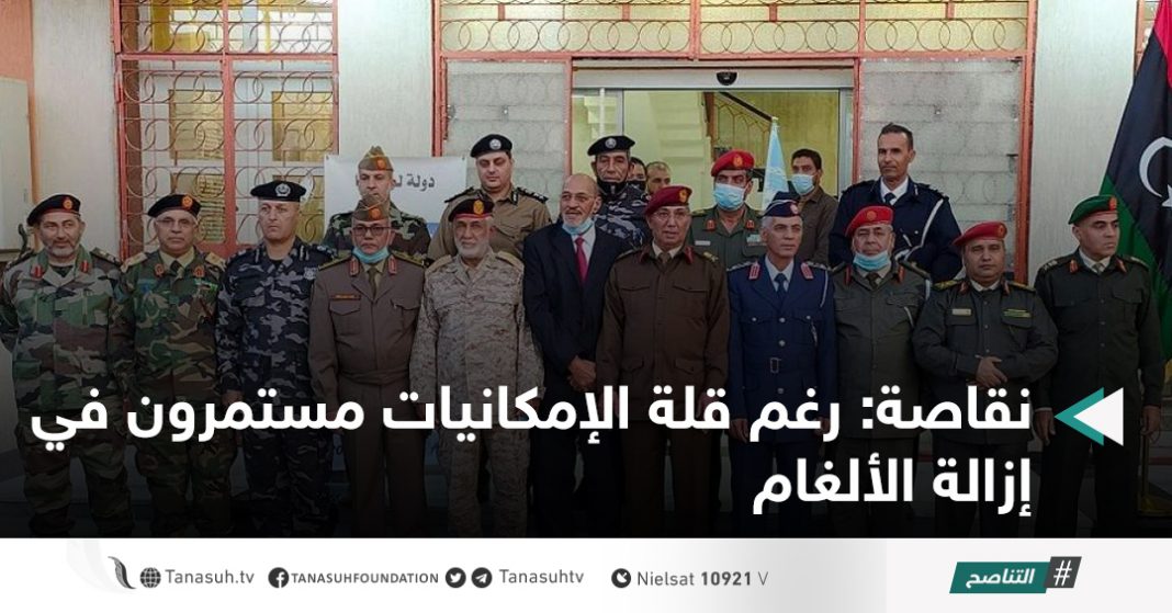 قال عضو اللجنة العسكرية المشتركة 5 + 5 العميد مختار النقاصة إنه وبالرغم من قلة الإمكانيات والدعم إلا أن سرية إزالة الألغام مستمرة في عملها.