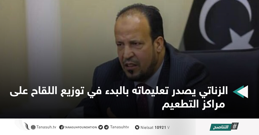 أصدر وزير الصحة في حكومة الوحدة الوطنية، علي الزناتي، تعليماته بالبدء بتوزيع اللقاحات على مراكز التطعيم المختلفة، تمهيداً للشروع في الحملة الوطنية للتطعيم ضد فيروس كورونا المستجد