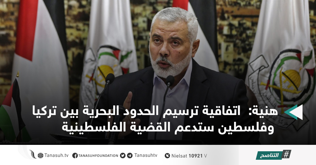 أخبار هنية: اتفاقية ترسيم الحدود البحرية بين تركيا وفلسطين ستدعم القضية الفلسطينية