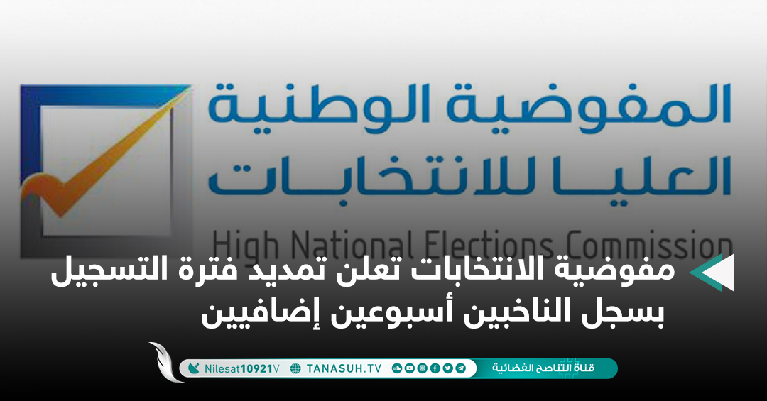 أخبار مفوضية الانتخابات تعلن تمديد فترة التسجيل بسجل الناخبين أسبوعين إضافيين.