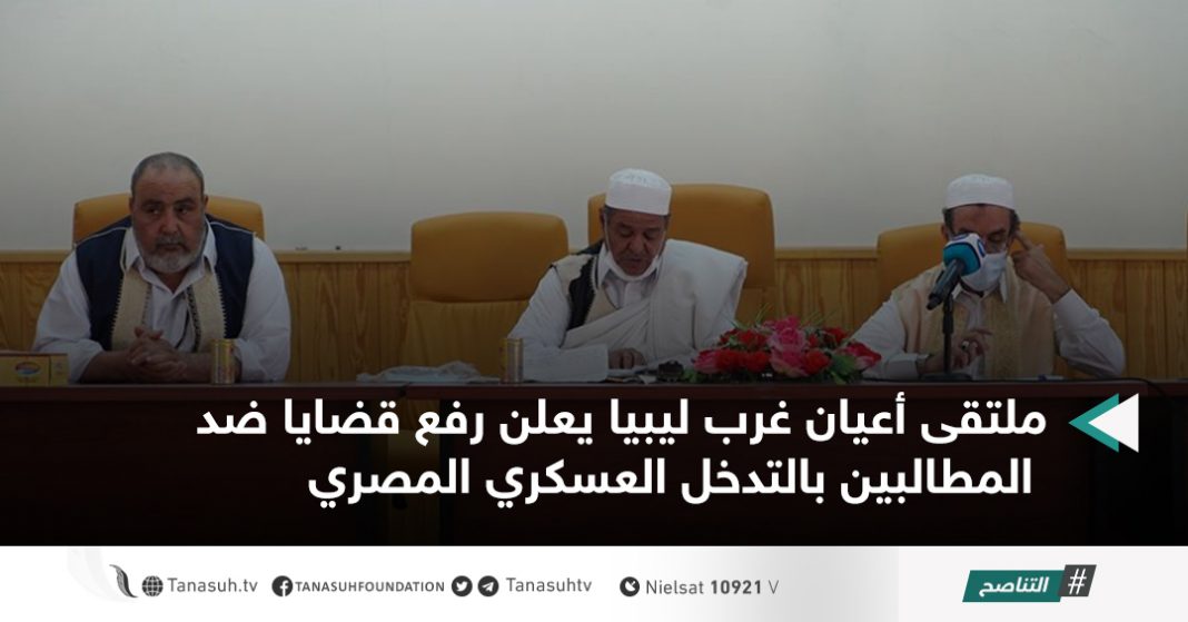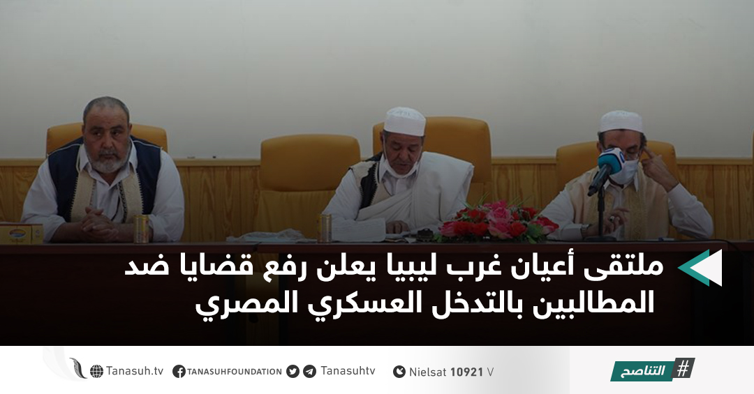 أعلن الملتقى العام لأعيان وحكماء غرب ليبيا في بيان له الخميس عن بدئه رفع دعاوى قضائية ضد من ادعوا تمثيلهم للقبائل الليبية واستنجدوا بالجيش المصري ليتدخل في ليبيا.