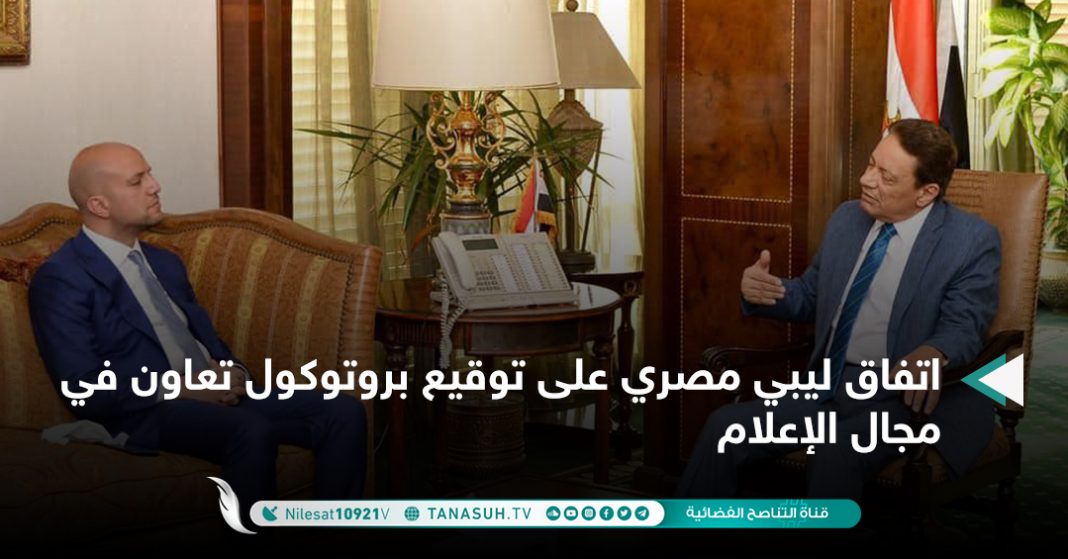 اتفق وزير الدولة للاتصال والشؤون السياسية بحكومة الوحدة الوطنية “وليد اللافي” مع رئيس المجلس الأعلى لتنظيم الإعلام في مصر “كرم جبر” على توقيع بروتوكول تعاون بين مصر وليبيا في المجالات الإعلامية.
