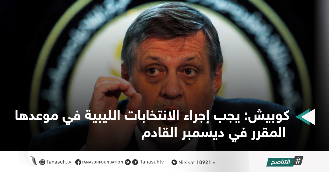 ودعا كوبيش جميع الفاعلين في الساحة الليبية إلى الالتزام ببنود الاتفاق السياسي ووضع تطلعات الشعب الليبي نصب أعينهم؛ للوصول وتحقيق الاستحقاق الانتخابي في موعده المقرر في الرابع والعشرين من شهر ديسمبر القادم