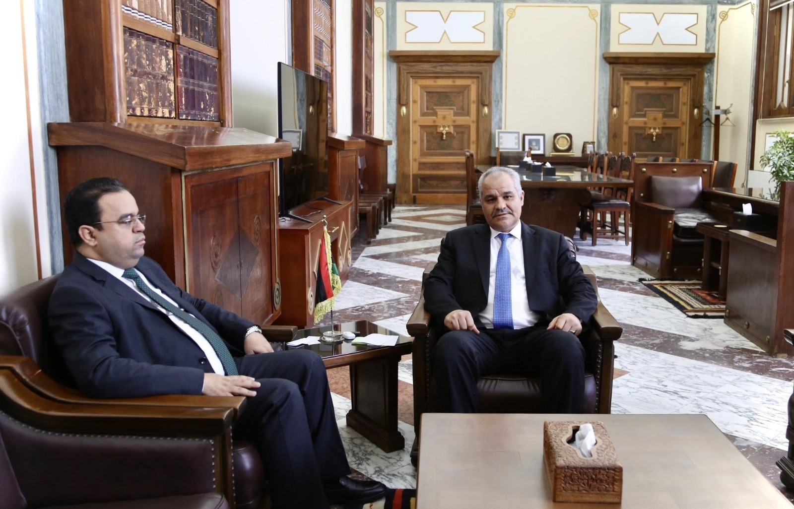 ناقش محافظ مصرف ليبيا المركزي، ناجي عيسى، ووزير العمل والتأهيل بحكومة الوحدة الوطنية، علي العابد، آليات تنظيم وتوثيق العمالة الوافدة، من خلال إلزامها بالحصول على تصاريح قانونية وربطها بمنظومة بيانات وطنية موحدة. كما تناول الاجتماع سبل الحد من اقتصاد الظل، عبر تتبع التصاريح إلكترونيًا وتعزيز الرقابة على المنشآت المخالفة.