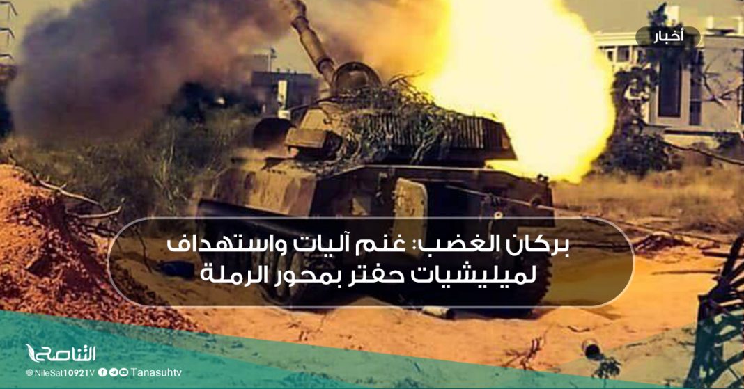 أعلنت عملية بركان الغضب أن قوات الجيش غنمت عدة آليات واستهدفت تجمعات لميليشيات حفتر بحي الكايخ.