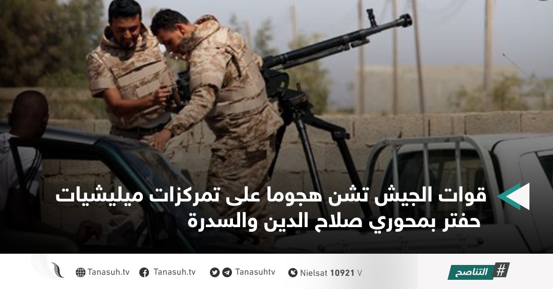 ذكر المتحدث باسم القوة المساندة للجيش الليبي مهند معمر بأن قوات الجيش والقوة المساندة لها شنت هجوما على تمركزات ميليشيات حفتر بمحوري صلاح الدين والسدرة الخميس.