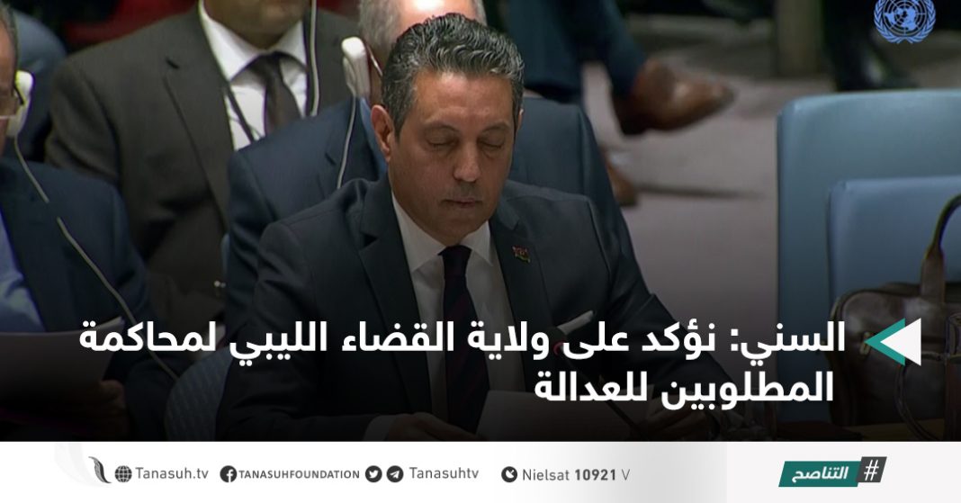 جدد مندوب ليبيا الدائم لدى الأمم المتحدة السفير الطاهر السني التأكيد على ولاية القضاء الوطني في مقاضاة جميع المتهمين المطلوبين للعدالة وفقاً لقانون العقوبات الليبي، مشددا على أن ذلك يعكس السيادة الليبية على إقليمها ومواطنيها