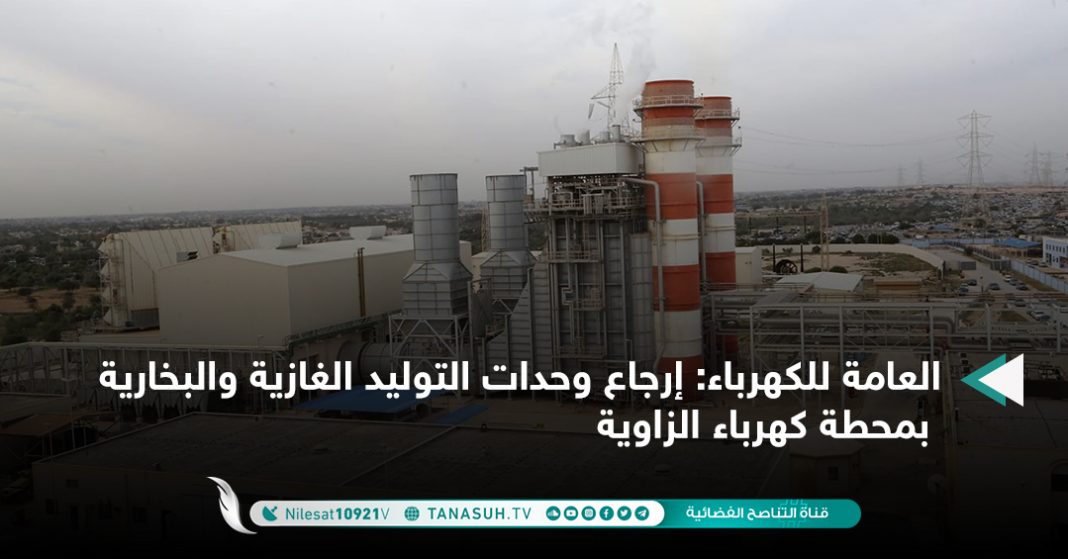 العامة للكهرباء: إرجاع وحدات التوليد الغازية والبخارية بمحطة كهرباء الزاوية