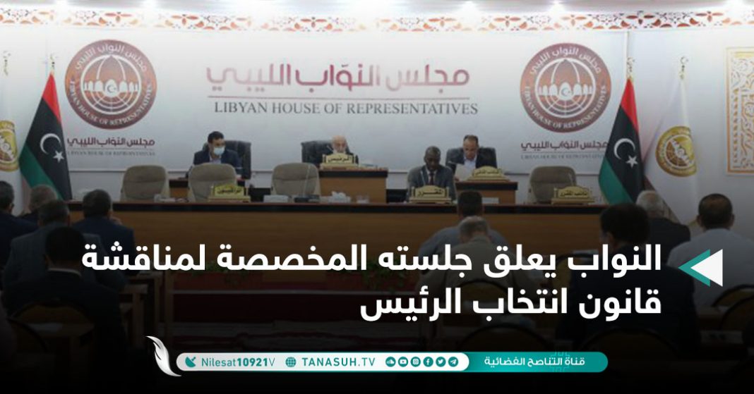 علق مجلس النواب بطبرق جلسته اليوم الثلاثاء، والتي خصصت لاستكمال مناقشة مواد مشروع قانون انتخاب الرئيس
