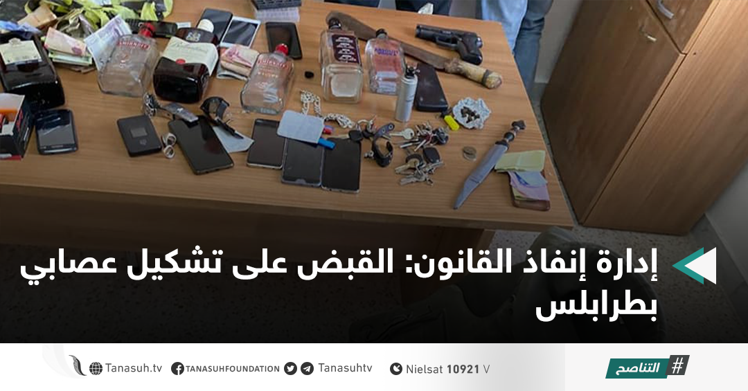 تمكنت وحدة التحري والقبض بإدراة إنفاذ القانون فرع طرابلس الأربعاء من ضبط تشكيل عصابي يقوم بارتكاب جرائم السرقات والسطو والمتاجرة بالمخدرات وذلك أثناء مداهمة أحد الأوكار بالعاصمة طرابلس.