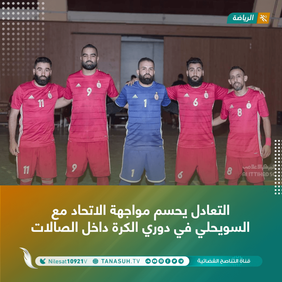 حسم التعادل الإيجابي مواجهة الاتحاد أمام نظيره السويحلي بهدف لكل منهما، ضمن مواجهات الدور السداسي لكرة القدم داخل الصالات.