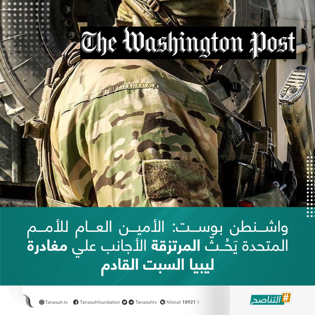 نشرت صحيفة والشنطن بوست الأربعاء مقالاً ذكرت فيه حث الأمين العام للأمم المتحدة أنطونيو غوتيرس على رحيل جميع المقاتلين والمرتزقة الأجانب من ليبيا بحلول يوم السبت القادم