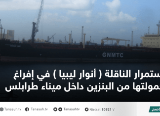 وصلت ناقلة “أنوار ليبيا” إلى رصيف ميناء طرابلس البحري بحمولة قدرها 25 مليون لتر من البنزين