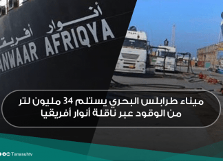وصلت ناقلة “أنوار ليبيا” إلى رصيف ميناء طرابلس البحري بحمولة قدرها 25 مليون لتر من البنزين